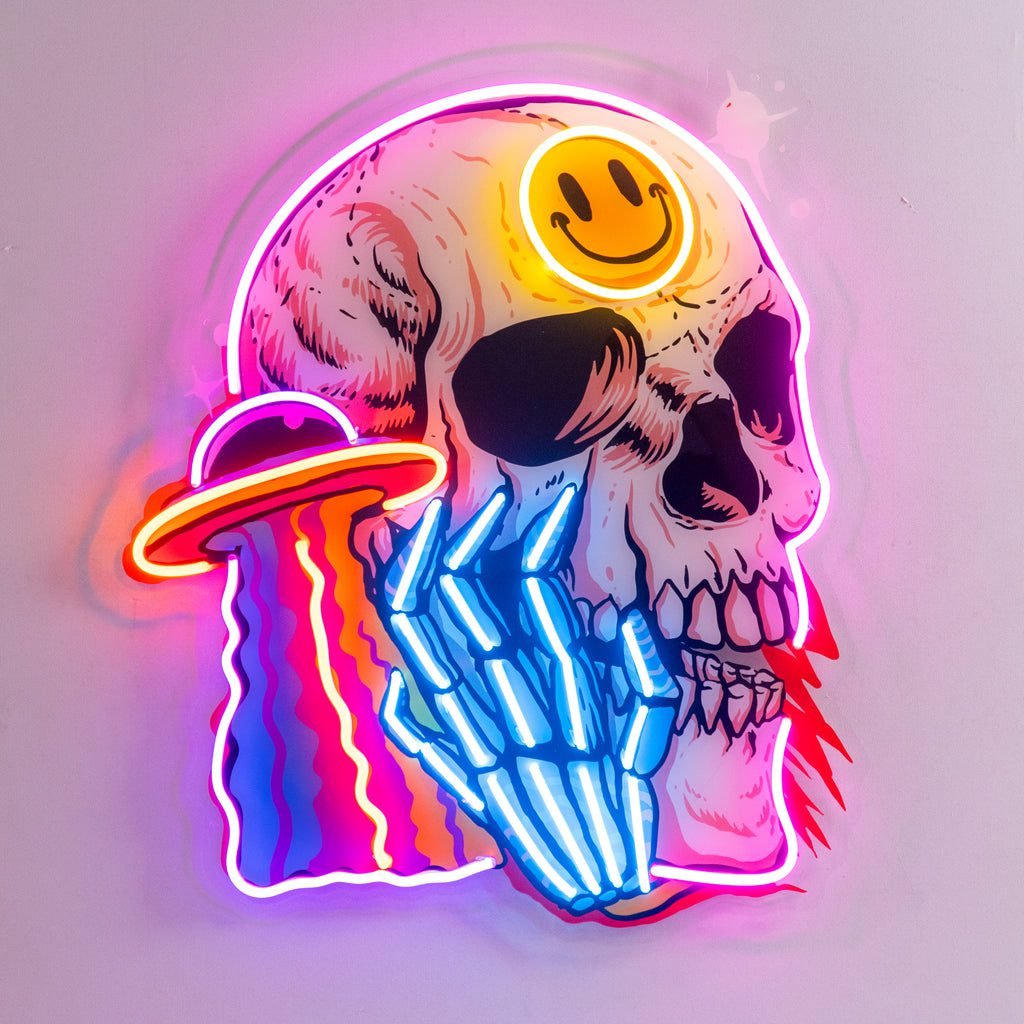 UFO Skull Vibe LED Neon Sign Light Pop Art